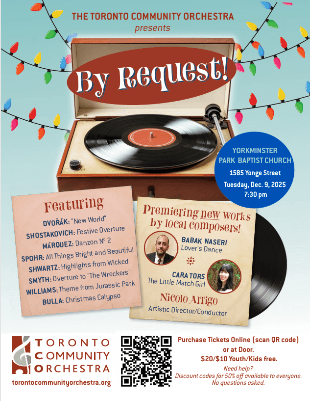Join us on December 9, 2025, 7:30pm at Yorkminster Park Baptist Church for our December concert! Purchase tickets online.